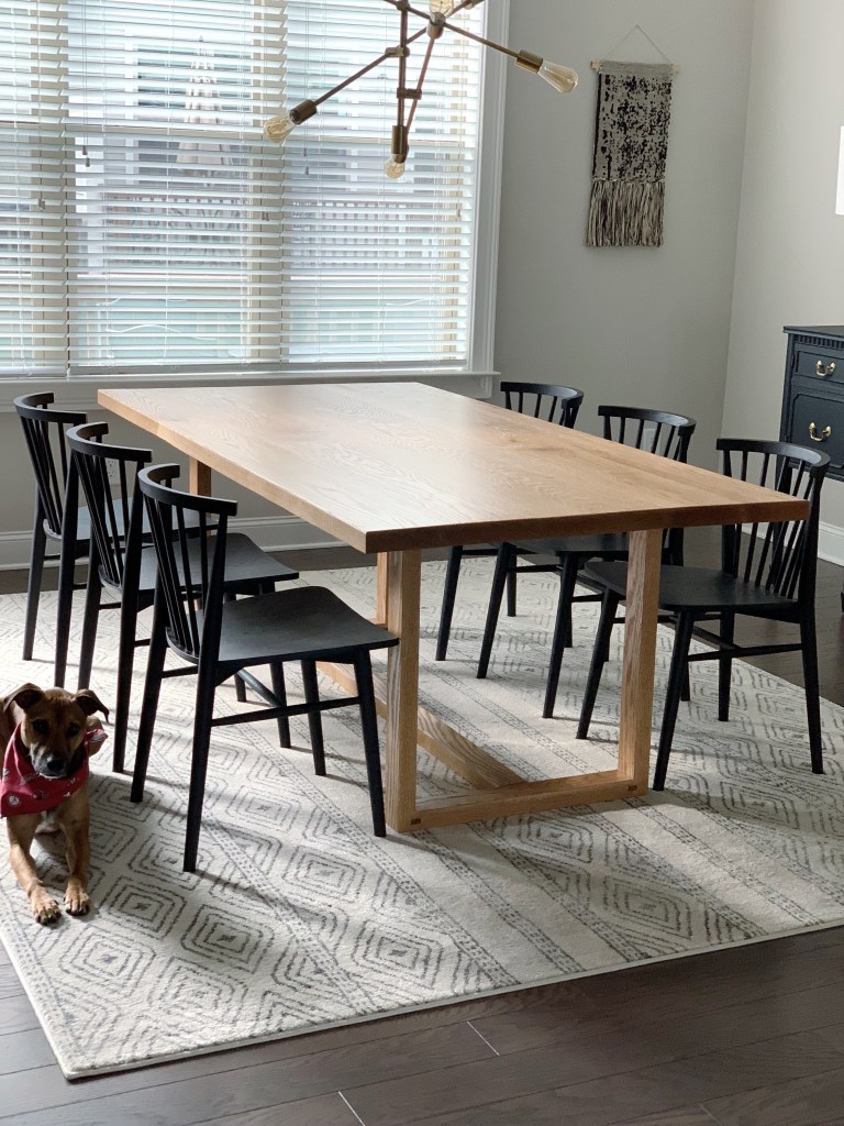 After about a week of finishing this beauty, we finally got it in our dining room!