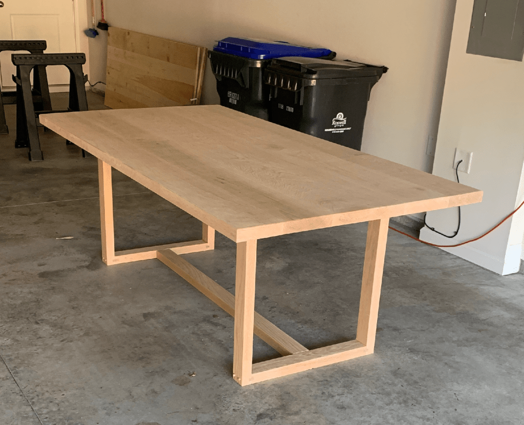 When we moved into our new home, I had a specific kitchen table idea in mind, and couldn’t find what I wanted from any of my favorite stores. I kept thinking it up in my head, and we ended up going 6 months without a kitchen table! (Thankfully we had barstools and could eat at the counter.. ha!) But after some time and planning, I convinced the hubs to build me the table in my head!