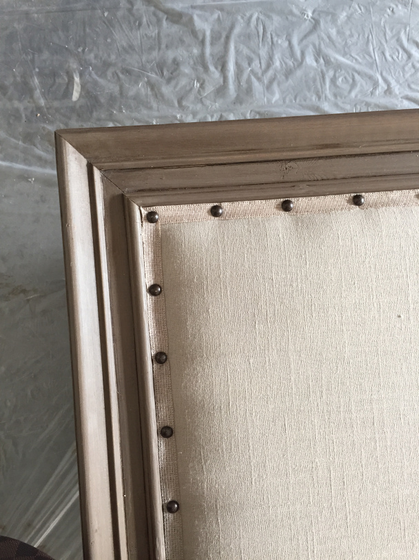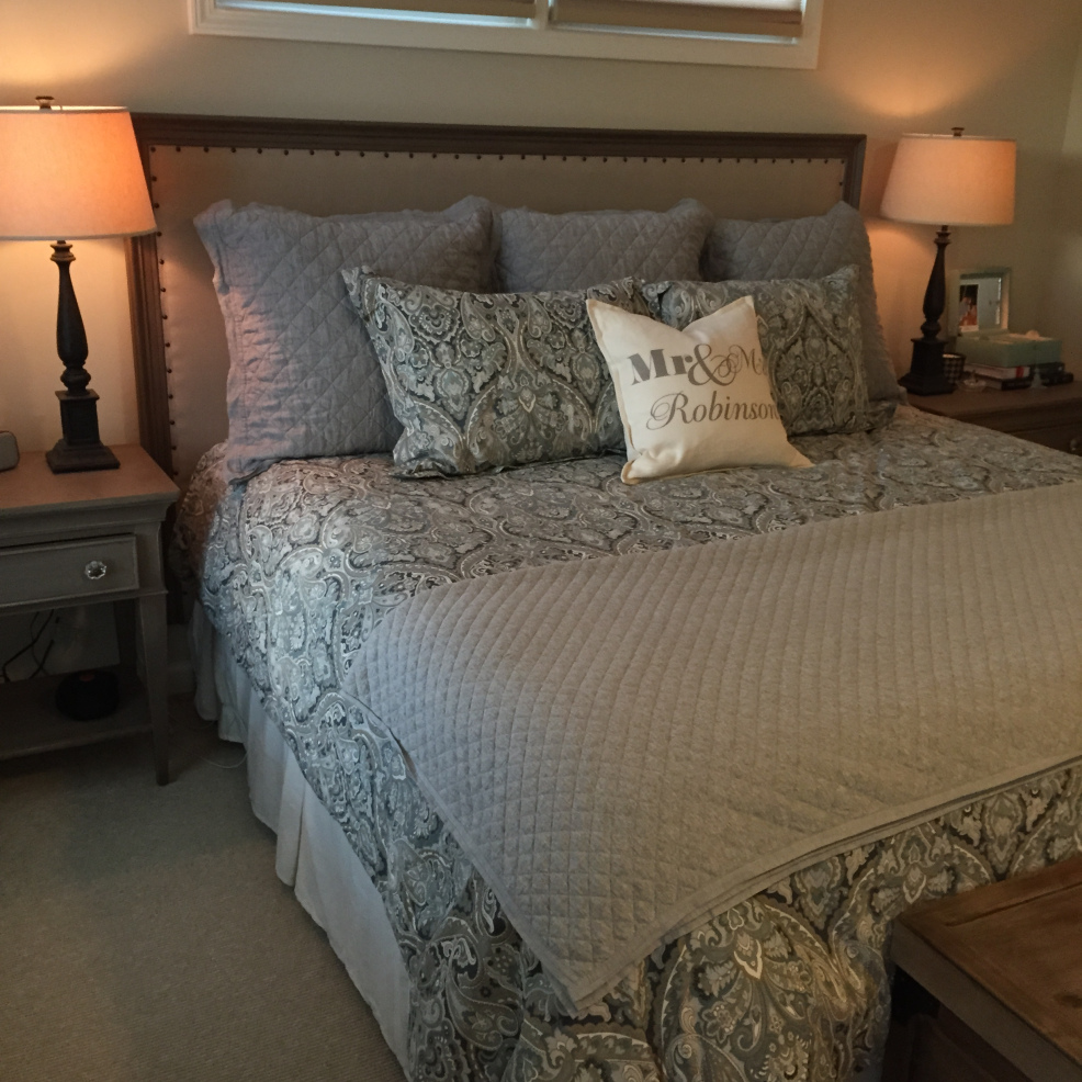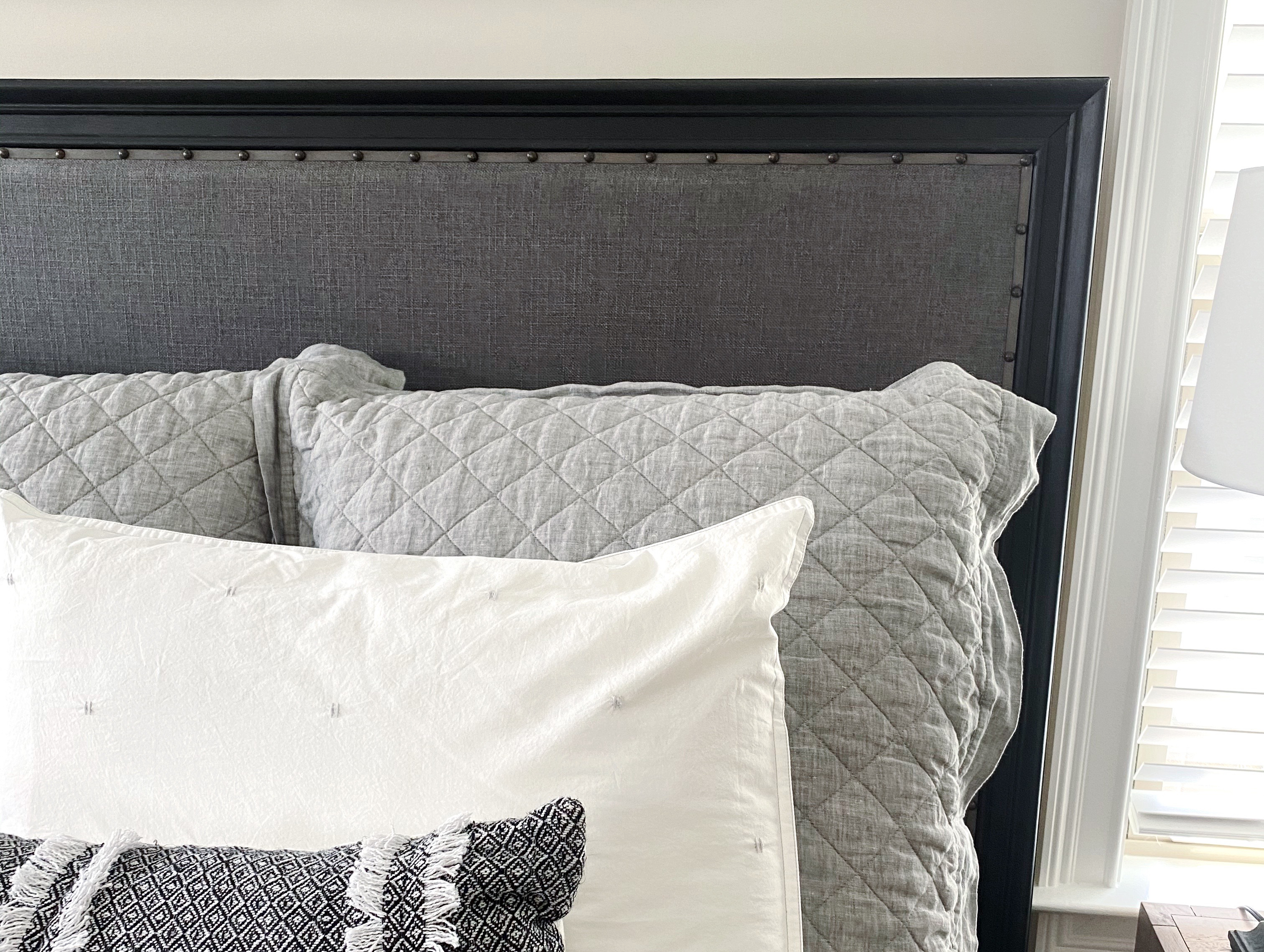 When we lived in our last home, I had it decorated in more of a ‘farmhouse’ style decor, with vintage furniture that my mom and I refinished ourselves. Our master bedroom furniture wasn’t ready to be replaced yet, so we tackled that to have a Restoration Hardware look! It looked great (and it was quite the undertaking), but we needed a headboard that would tie it all together. We had a fully upholstered headboard in our guest bedroom, so I knew I wanted something slightly different, and more masculine in the master.