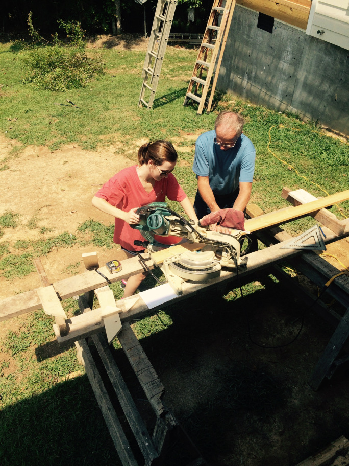 Once you gather your supplies, you’ll need to cut your panel pieces and 1x4s to fit your plywood, luckily our lake house is having some renovations done to it, so our builder let me use his tools to cut my pieces!