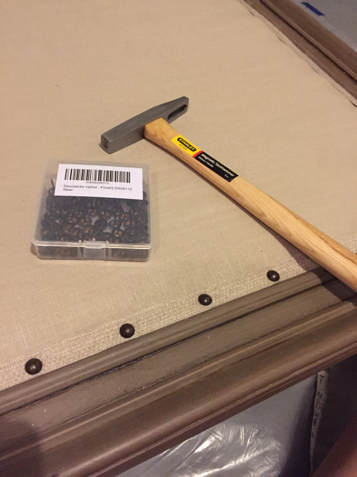 Using a tack hammer made this much much easier, and it didn’t damage the tacks like a regular hammer would have