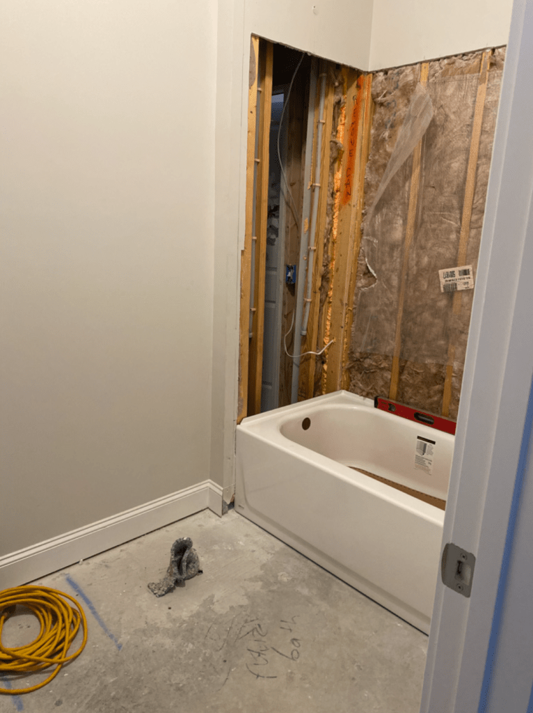 When we first moved into our house, we were told the builders had ‘stubbed’ the larger basement closet to be a bathroom, so our plan was to eventually have on installed to up the value of our home. After waiting well over 2 years, we finally had saved up enough to get the ball rolling on this project! We went through 2 contractors before we found someone that was in the price range we could afford, and not have to wait 6 months.. (everyone was doing home projects by the end of 2020, since we were all stuck at home and wanted better amenities, apparently!)
